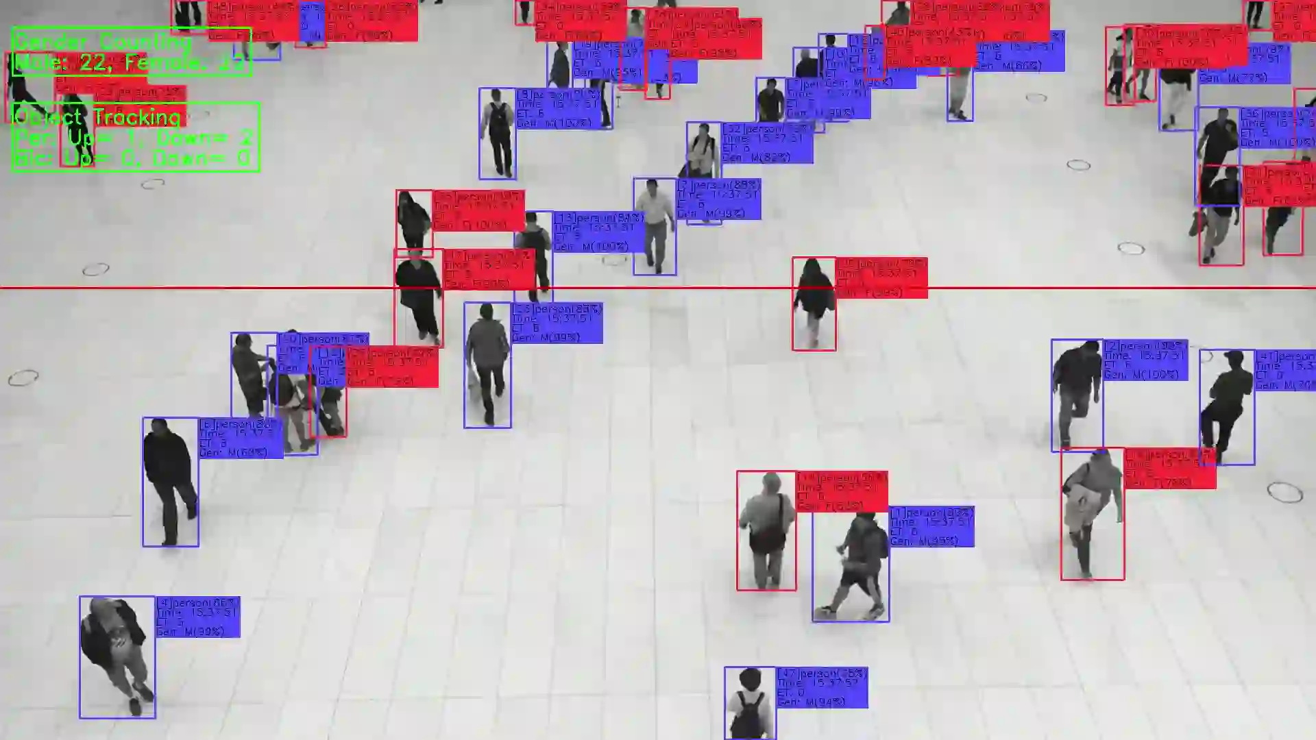 라인별 입장/퇴장 수, 성별·연령대 속성까지 정밀하게 분류합니다.